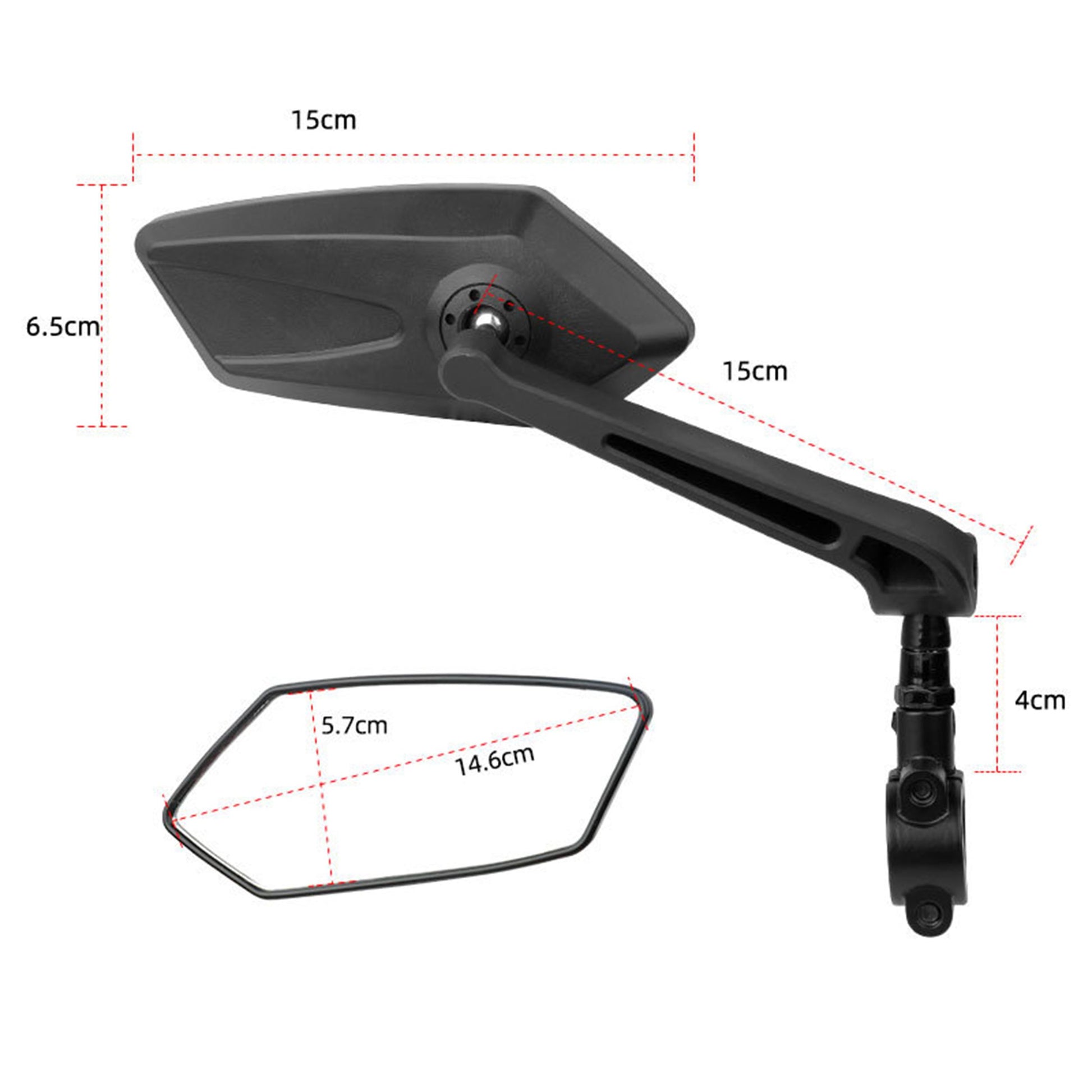 Die beiden Rückspiegel sind schnell und einfach auf Lenkern mit 20-24mm Durchmesser montiert. Damit sind sie für die meisten Fahr- und Zweiräder geeignet. Sie lassen sich um 60° einstellen und die Spiegelfläche ist ca. 15cm*5cm groß. Außerdem ist sind die Rückspiegel stabil und faltbar, was einerseits die Spiegell schützt, andererseits die Unterbringung des E-Bikes oder Fahrrads erleichtert.