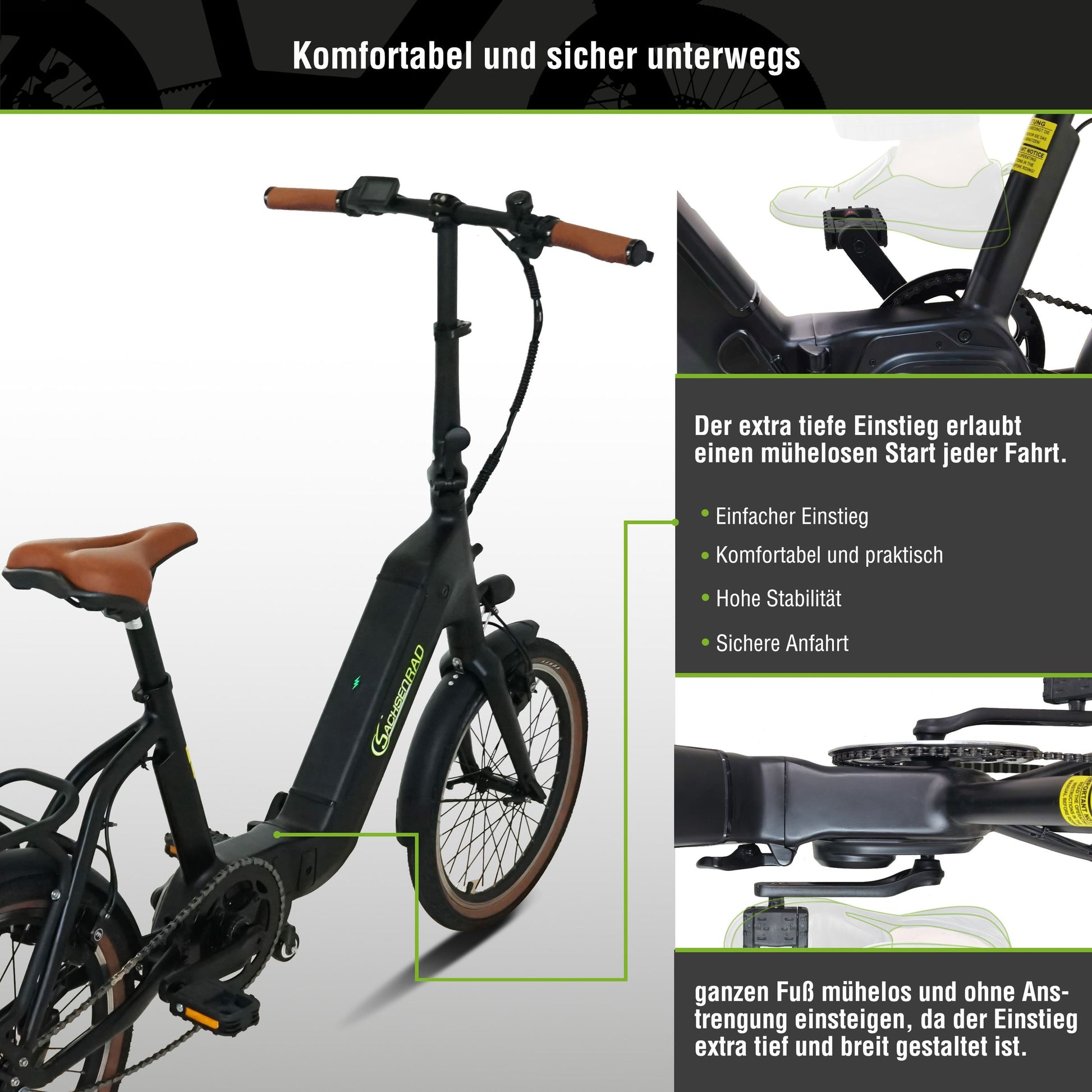 faltbar, LCD-Steuerdisplay, Fahrmodus Pedelec, LED-Frontlicht, LED Rücklicht, Gepäckträger