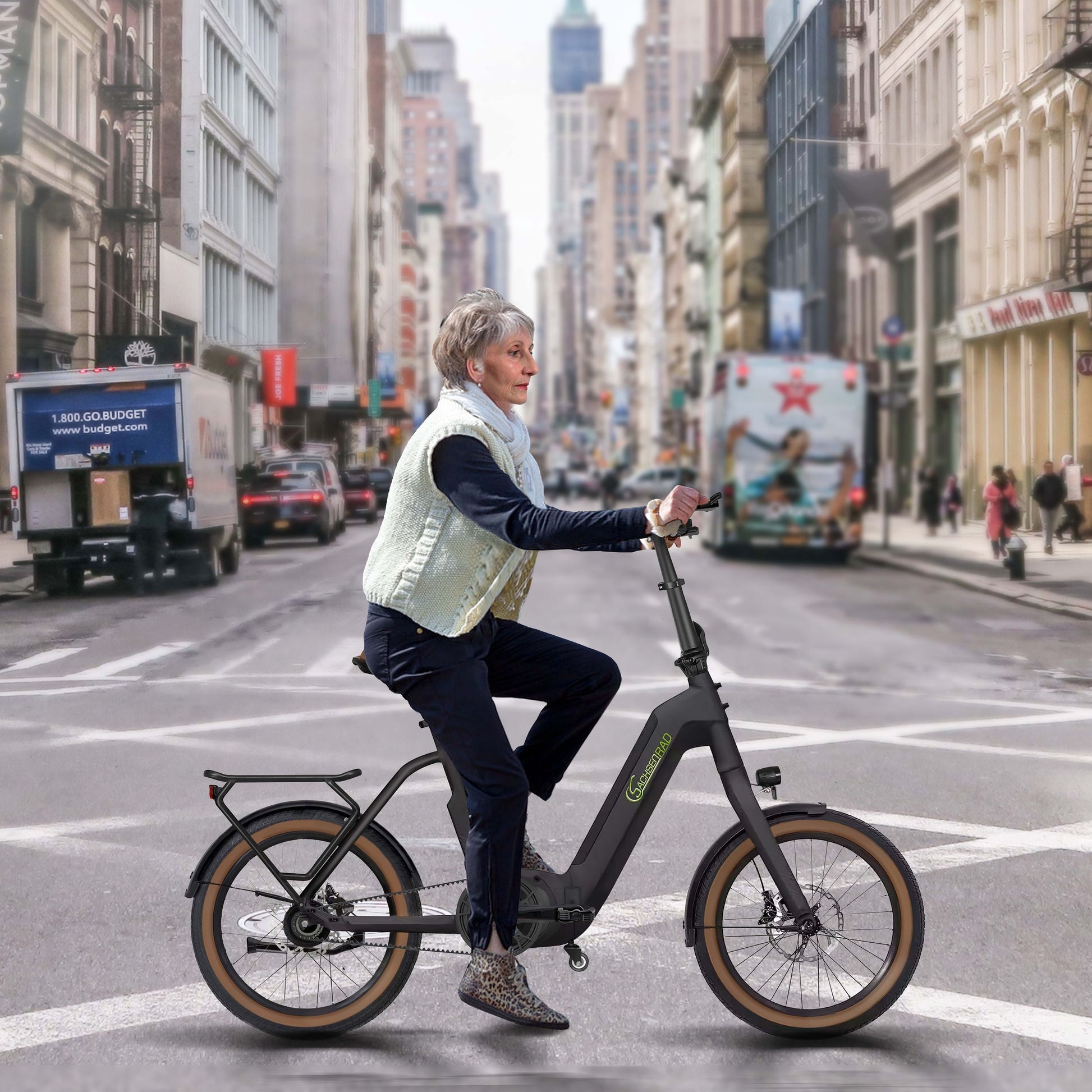 Der robuste Aluminiumrahmen des F3G Centro ist klappbar, wodurch das Rad leicht zu transportieren und zu verstauen ist. Der besonders tiefe Einstieg erspart Ihnen sportliche Höchstleistungen. Sorgenfreies, bequemes Auf- und Absteigen macht jede Fahrt zum Vergnügen – egal, ob im Stadtverkehr oder auf längeren Ausflügen.