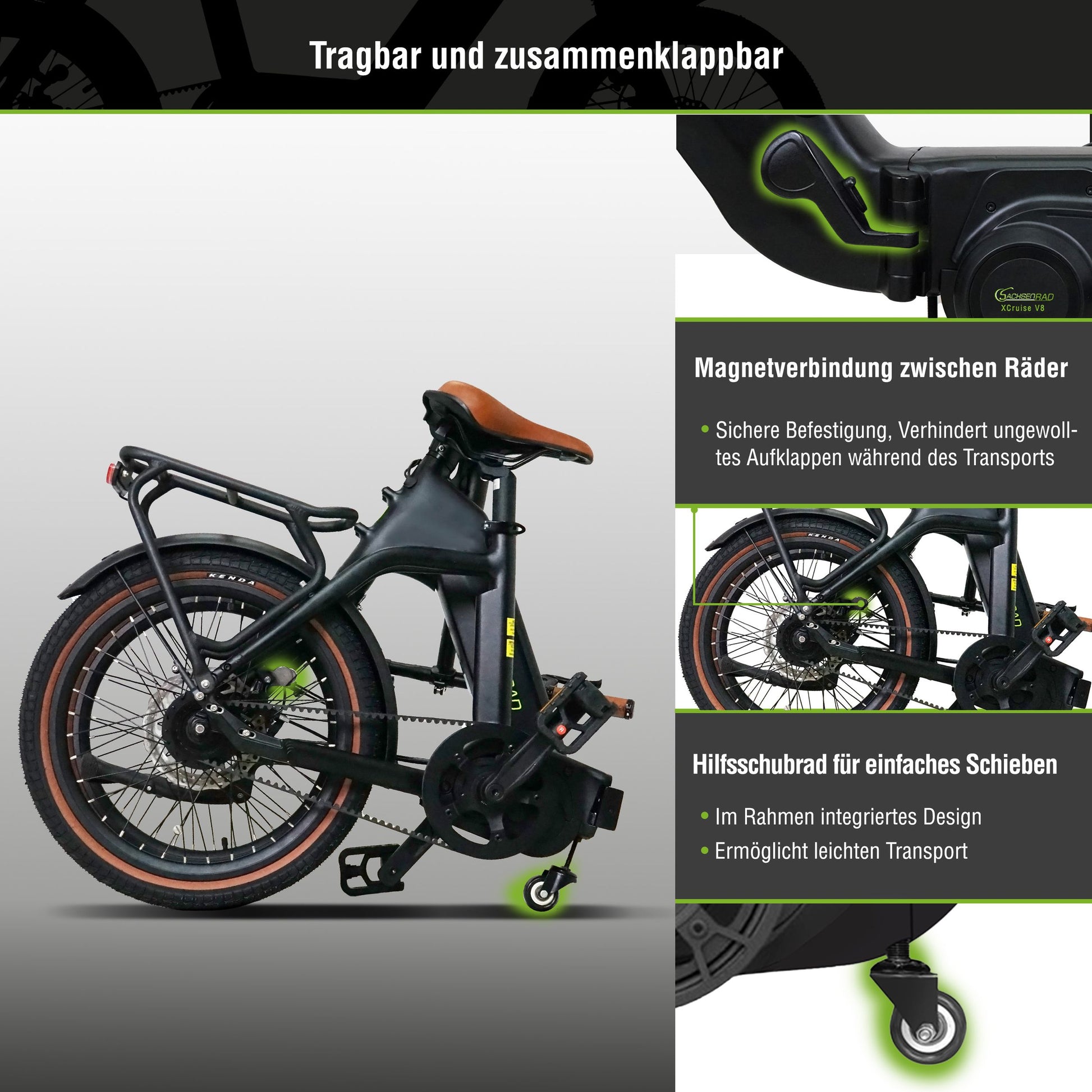 Das SachsenRAD E-Faltrad F3G Centro ist Ihr praktischer Begleiter im Alltag oder beim nächsten Urlaub mit Auto, Boot, Wohnwagen oder -mobil. Dabei glänzt es mit besonders tiefem Einstieg, einfacher Handhabung, einem starken Motor und hoher Reichweite.