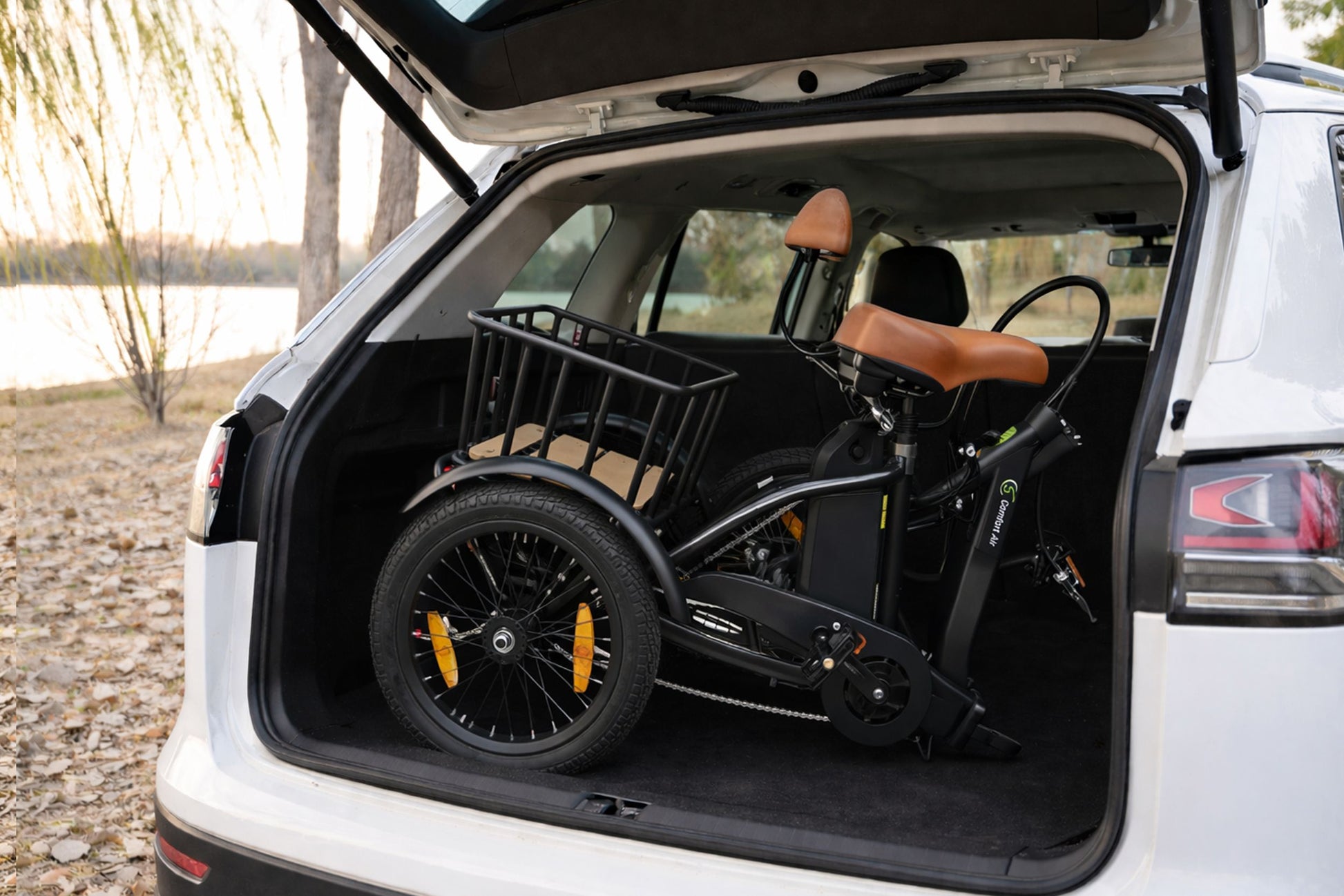 Trotz seiner stabilen Dreirad-Konstruktion ist das Fahrrad faltbar. Ein robuster Faltverschluss mit Sicherung ermöglicht das platzsparende Zusammenklappen des Rahmens – ideal für die Aufbewahrung in Garage oder Carport und besonders praktisch, wenn der verfügbare Stellplatz begrenzt ist.